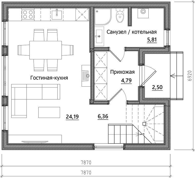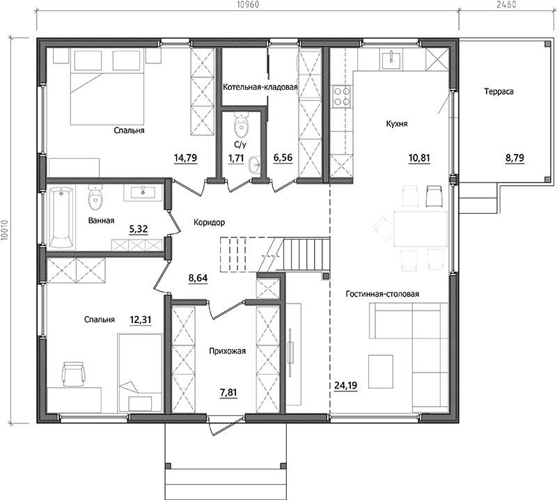 Проект А-83 (без терассы) дом каркасный