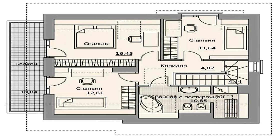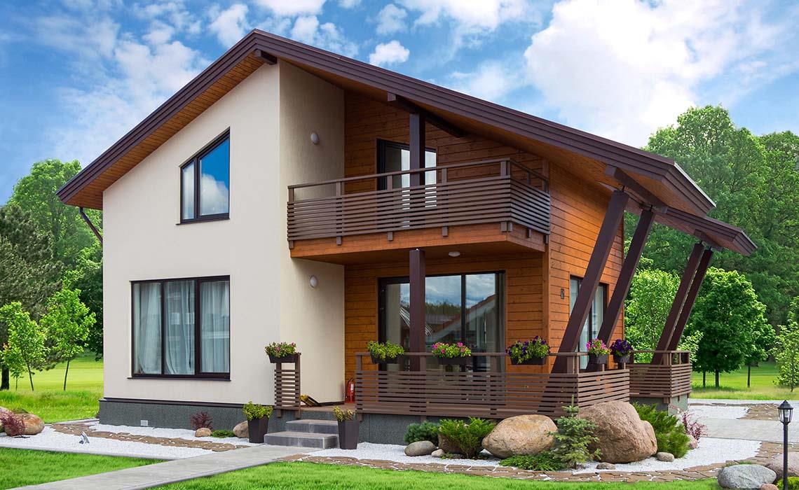 Проект А-128 (балконы и террасы входят в стоимость) дом каркасный