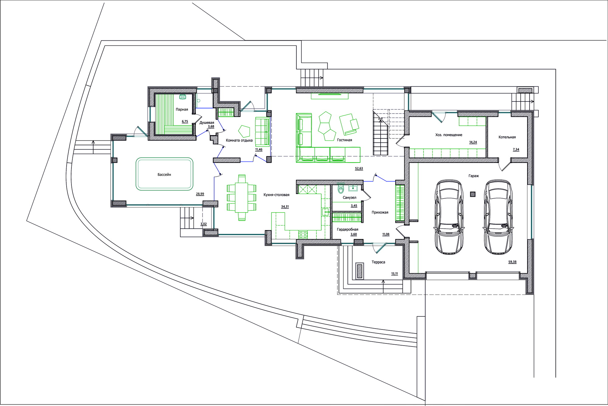 - Внешняя отделка: фиброцементные панели CEDRAL (Бельгия)