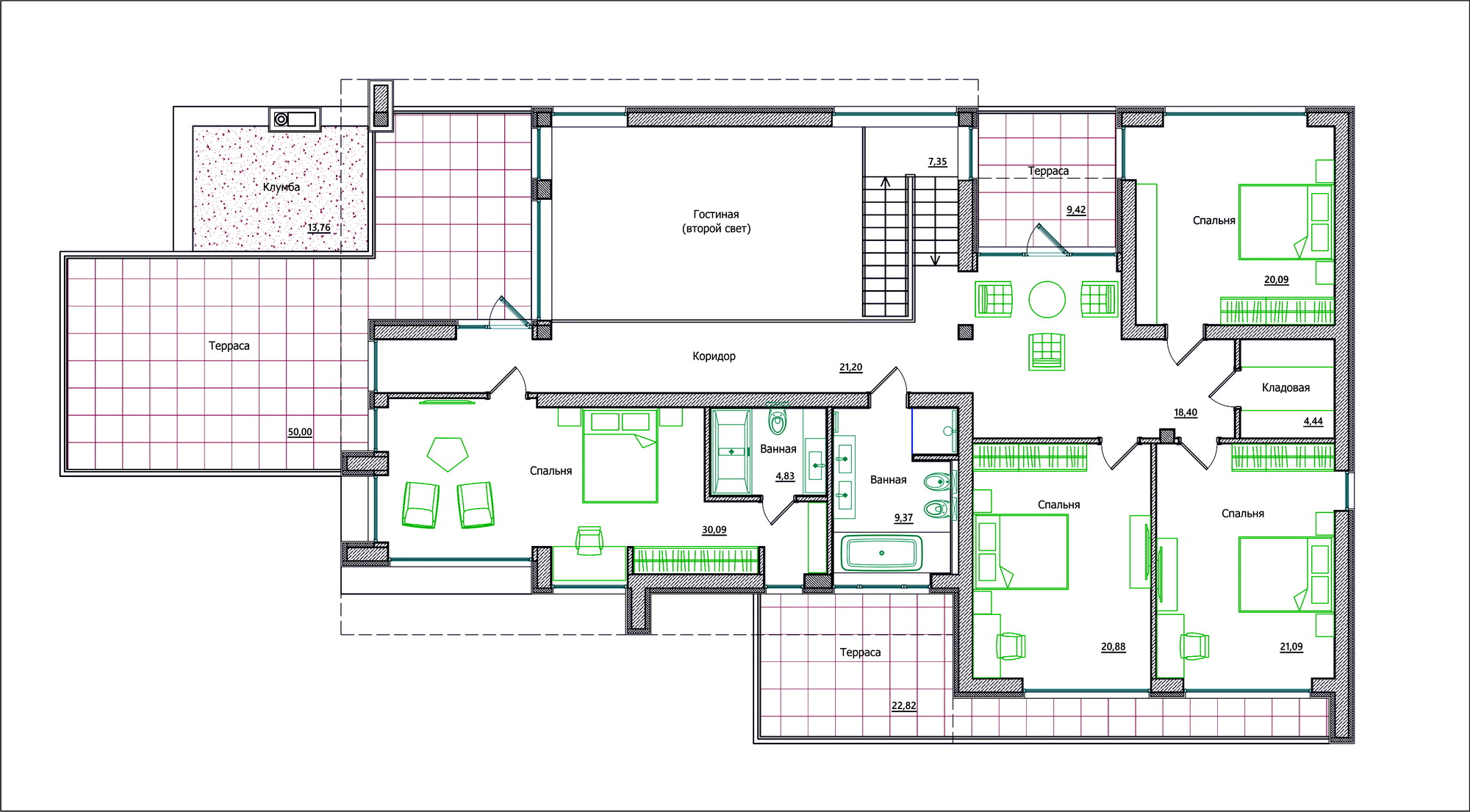 - Количество спален: 5+
