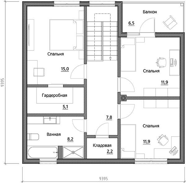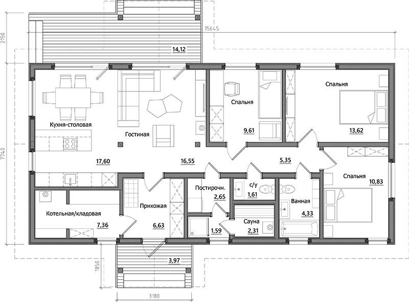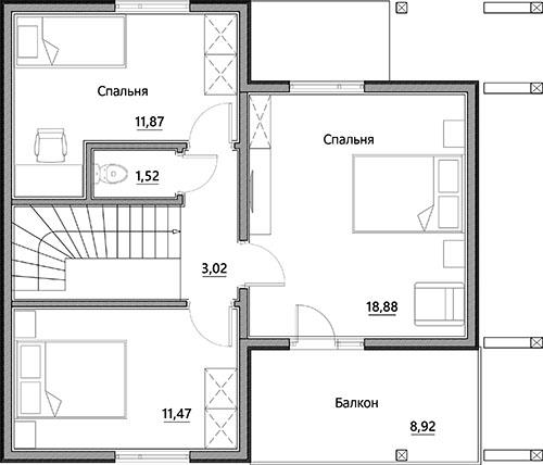 Проект А-118 (балконы и террасы входят в стоимость) дом Каркасный